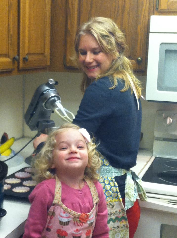 Caught unaware in my “natural habitat” as my family jokes! (My sister, of course, is always picture-ready.)